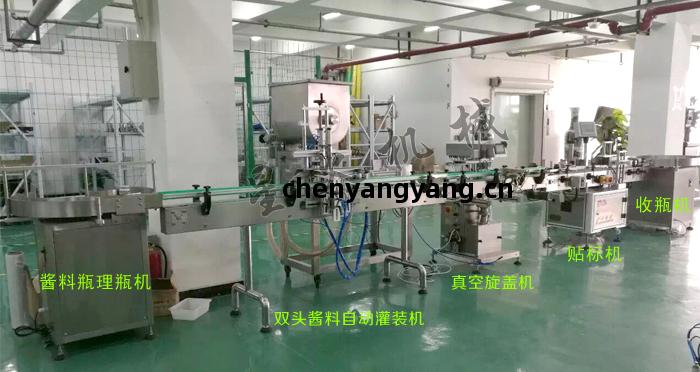 雙(shuang)頭全自(zi)動(dong)醬(jiang)料(liao)灌(guan)裝生產(chan)線有雙(shuang)頭自(zi)動(dong)灌(guan)裝、真(zhen)空旋(xuan)蓋(gai)機(ji)、圓瓶(ping)自(zi)動(dong)貼標機(ji)、收(shou)瓶(ping)機(ji)等(deng)設(she)備共同組成(cheng),效率(lv)高,適(shi)合顆粒醬(jiang)料(liao)、香(xiang)菇醬(jiang)、辣椒醬(jiang)等(deng)醬(jiang)料(liao)產(chan)品(pin),雙(shuang)頭自(zi)動(dong)醬(jiang)料(liao)灌(guan)裝機(ji)是(shi)我司(si)專門針對醬(jiang)料(liao)灌(guan)裝需求(qiu)而(er)研制,結構合理、品(pin)質考究,灌(guan)裝精(jing)度(du)高(gao),在裝機(ji)調整(zheng)、設(she)備清洗、維護(hu)保(bao)養(yang)等(deng)方面(mian)更(geng)加簡單(dan)方便。